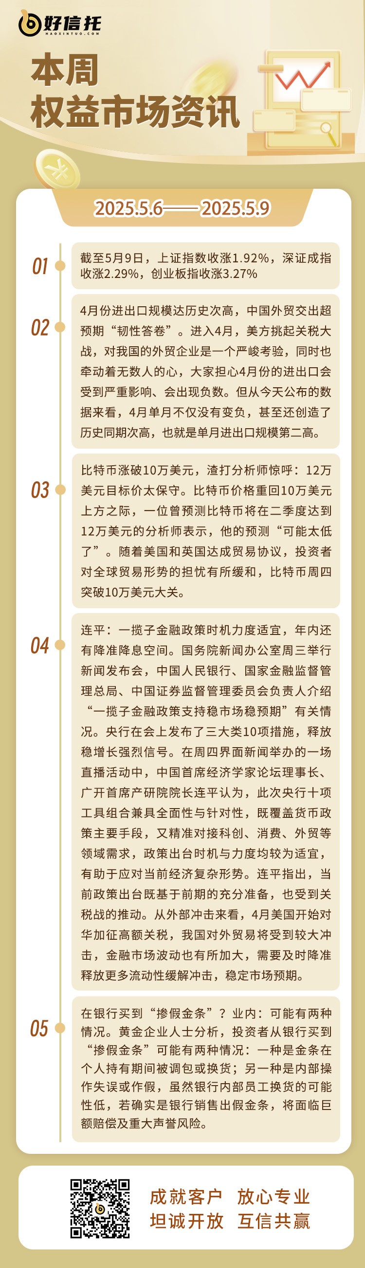 1、香港金管局:香港货币及金融市场保持有序运作。5月7日,美联储发布议息决议声明,美联储宣布将联邦基金利率目标区间维持在4.25%至4.50%。这是今年1月以来美联储连续第三次维持利率不变。香港金管局表示,美联储维持息率不变的决定符合市场预期,但最近美国当局公布的连串关税措施令当地通胀和经济前景增添不确定性,因此美联储目前在货币政策上采取观望态度。香港方面,货币及金融市场保持有序运作,港元汇率近日走强,主要受股票投资相关的港元需求以及区内货币兑美元升值带动,触发了联系汇率制度下7.75港元兑1美元的“强方兑换保证”。香港金管局按照联汇制度从市场买入美元、沽出港元,银行体系总结余也相应上升,令港元流动性增加,拆息有所回落。预期港元资金供求及整体流动性等因素会继续影响港元拆息,特别是较短期限的息率。香港金管局提示,美国关税措施变化和美国利率走势将是金融市场关注的焦点,也存在很大不确定性,环球金融市场难免受到影响而出现波动。在作出置业、投资或借贷决定时,应小心考虑及管理风险。香港金管局会继续密切监察市场变化,维持货币及金融稳定。